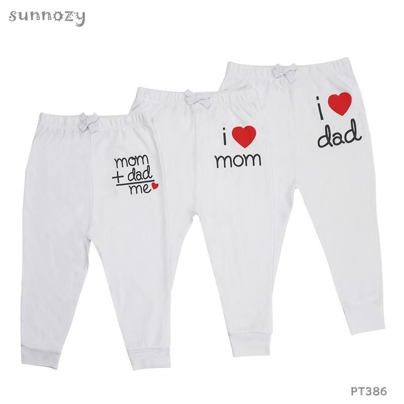 Celebrate the sweetest bond with this adorable 3-pack of soft cotton baby pants, designed with love for mom, dad, and baby. Perfect for daily wear, these pants combine comfort, style, and heartwarming prints that make every outfit special.