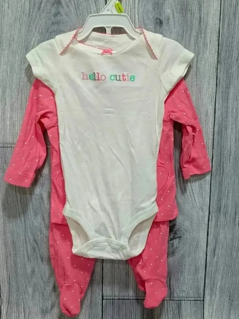 • Design: A clean white sleepsuit decorated with a tiny bow pattern and soft pink trim at the neck and cuffs.
