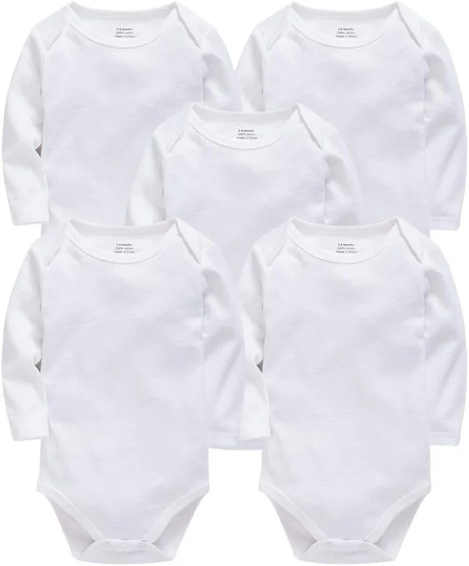 Keep your little one cozy and comfortable with our premium 100% cotton baby bodysuits. Designed for everyday wear, these soft, breathable, and gentle bodysuits are perfect for delicate baby skin. Each set includes 5 long-sleeve white bodysuits, offering both comfort and convenience for parents.