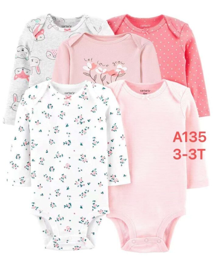 Carter’s Baby Girl Long Sleeve Bodysuit Set – 5 Pack (Size: 3-3T)