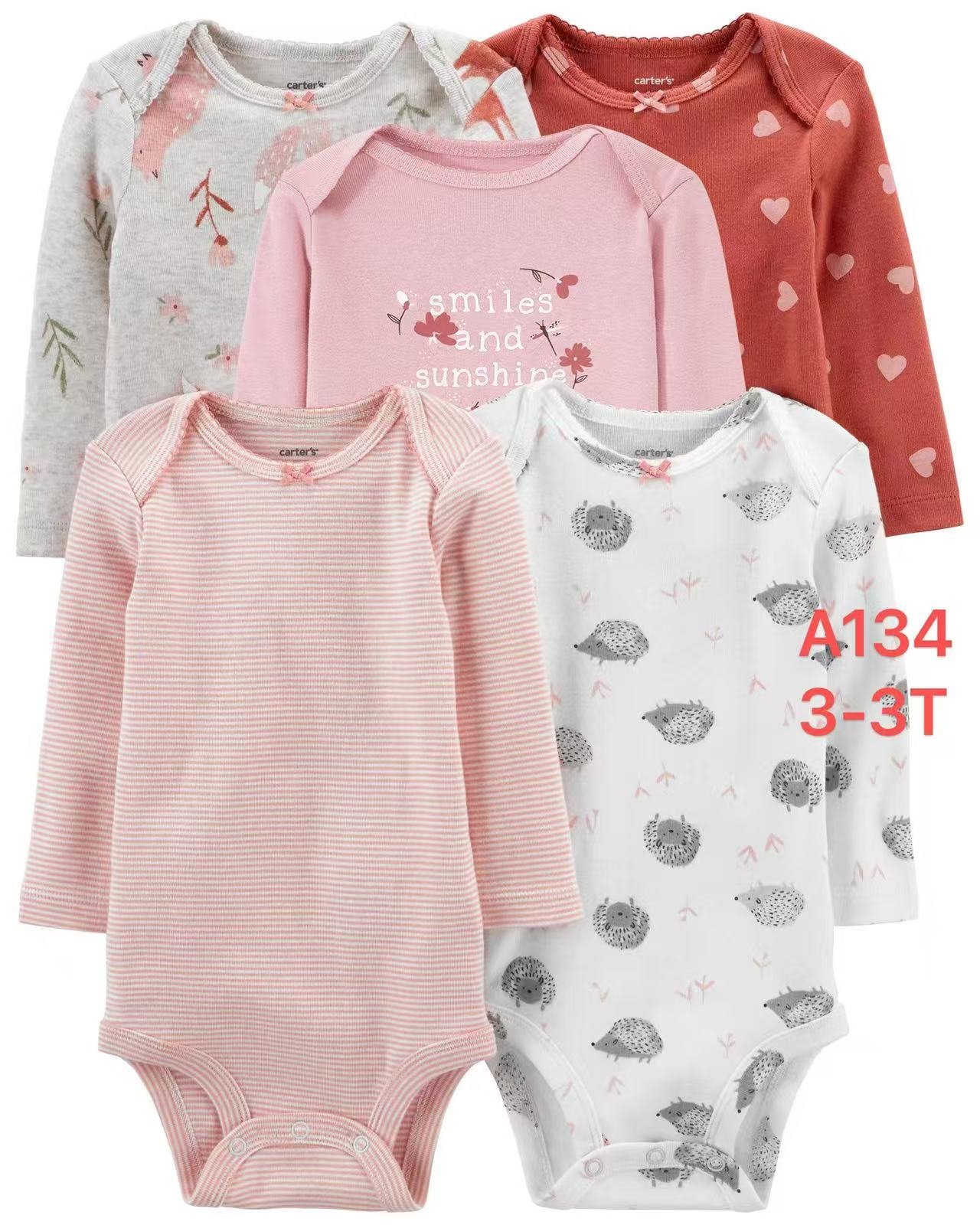 Keep your little one cozy and stylish with this adorable 5-pack of baby girls’ long sleeve bodysuits. Perfect for layering or wearing alone, each bodysuit features a unique and charming design: