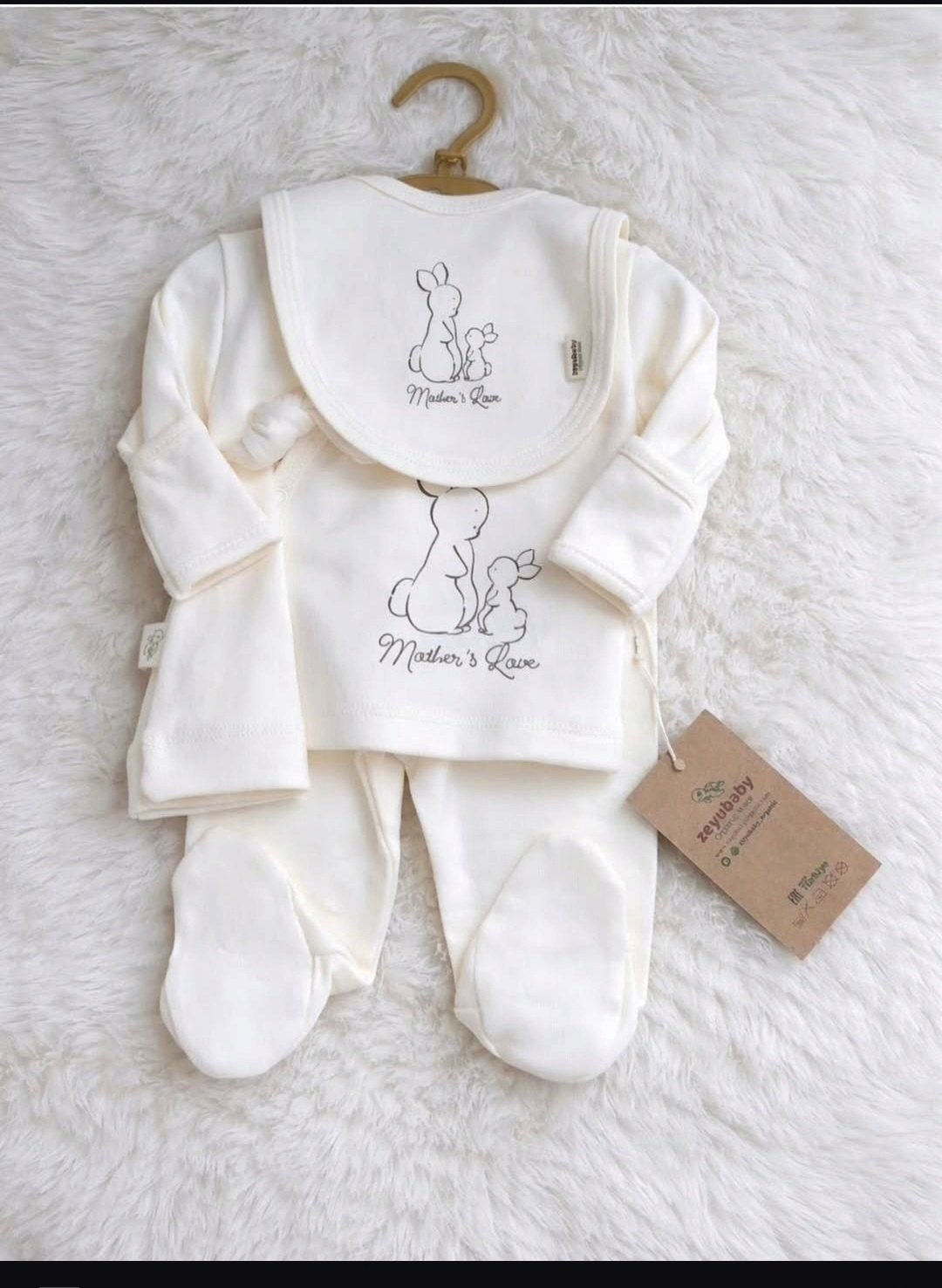 features a cute bunny illustration with the text “Mother’s Love,” giving it a sweet and gentle look. Perfect for newborns.