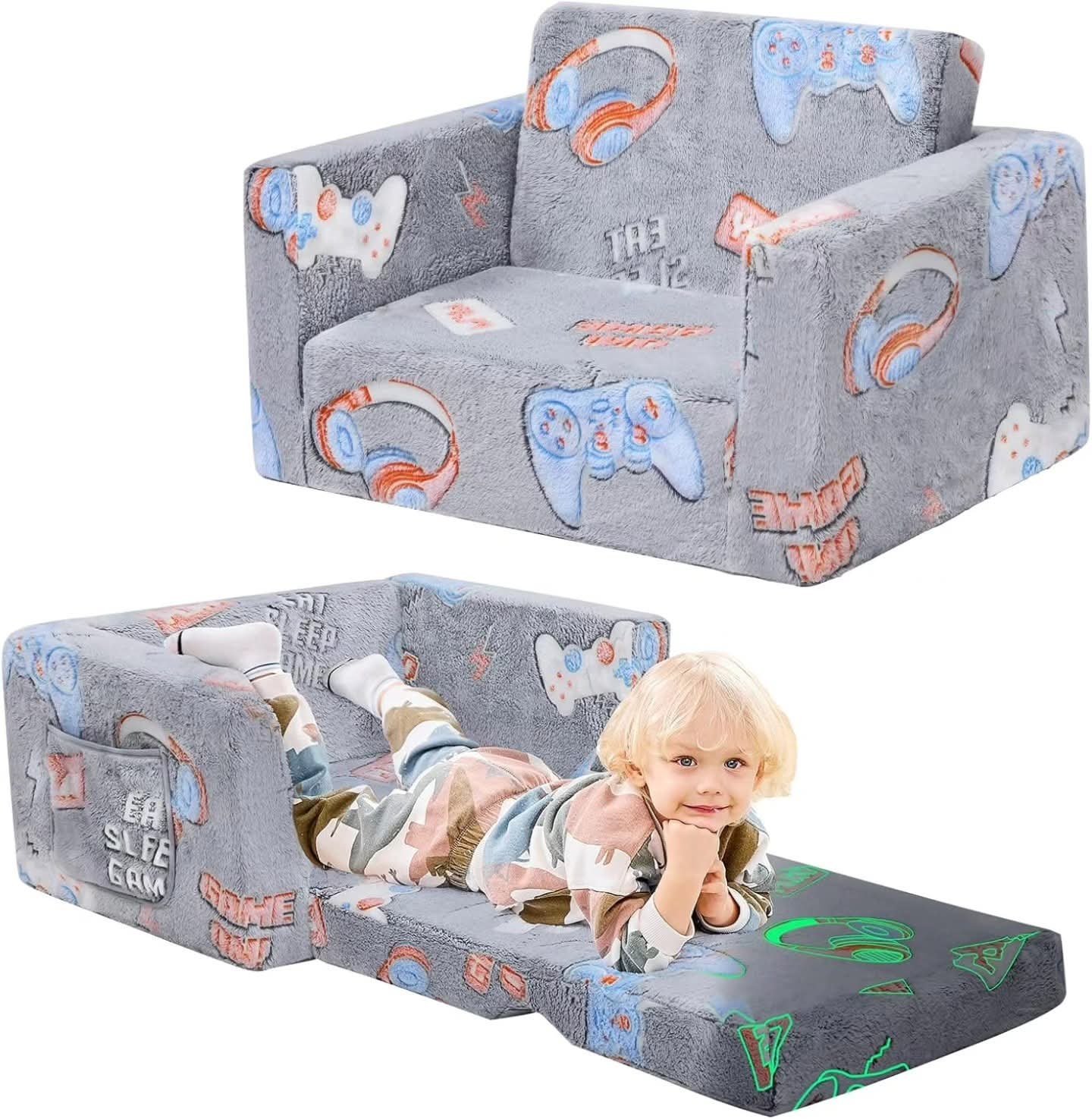 Glow-in-the-Dark 2-in-1 Flip Open Kids’ Sofa & Lounger