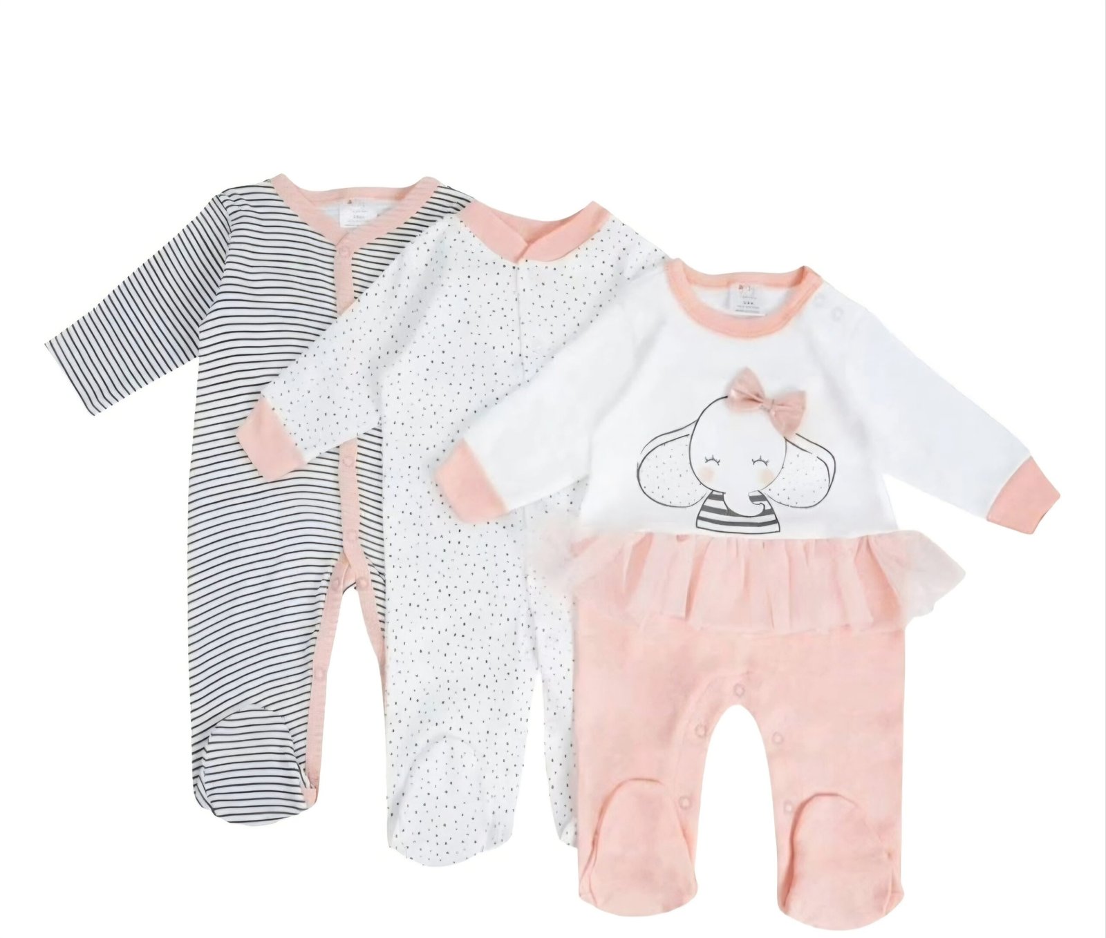 with this delightful Little Duck 3-Piece Cotton Sleepsuit Set, thoughtfully designed for newborns aged 0–3 months. Crafted from 100% soft, breathable cotton, these footed sleepsuits ensure cozy comfort for naps, playtime, and everyday wear.