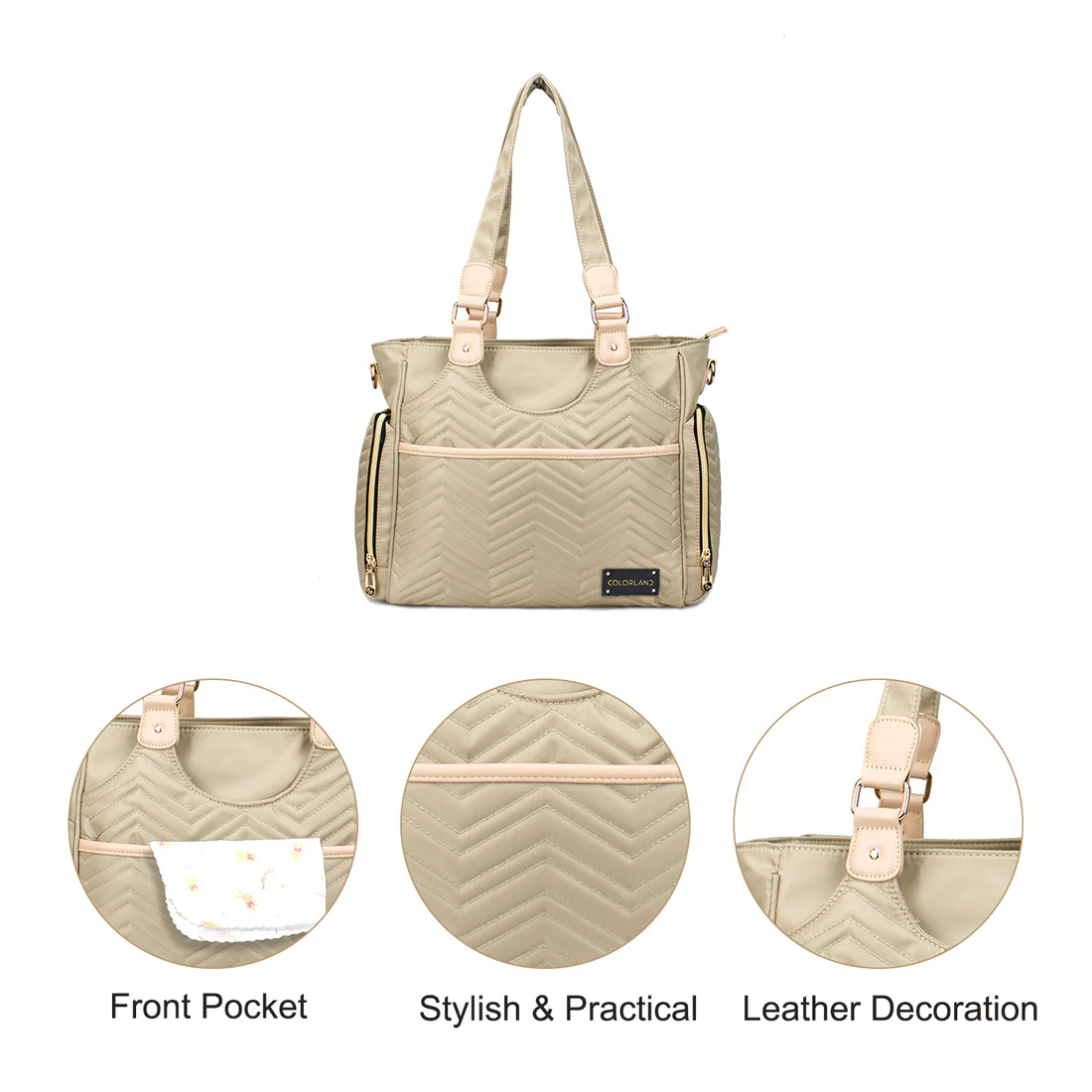 As a diaper bag is also converted into a cross-body bag or a single shoulder diaper bag ,high-quality environmentally friendly waterproof fabric and wear resistance strong,fashion for Mum or Dad.