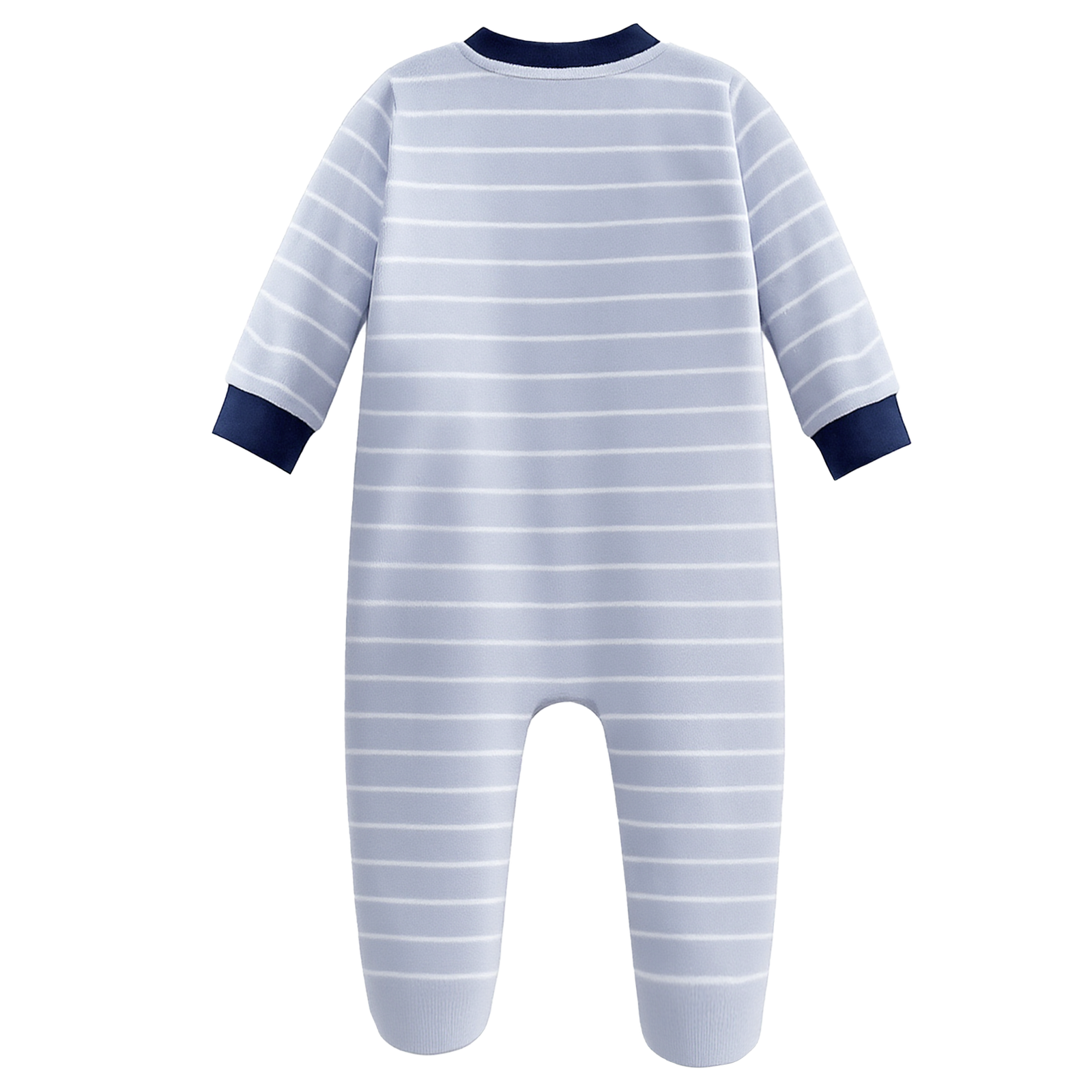 🌈 Classic Striped Pattern: Light blue and white stripes for a timeless, gender-neutral look.