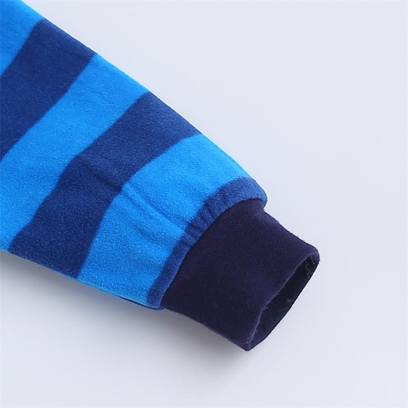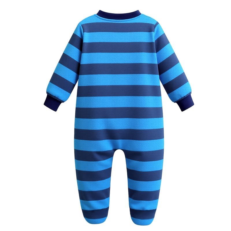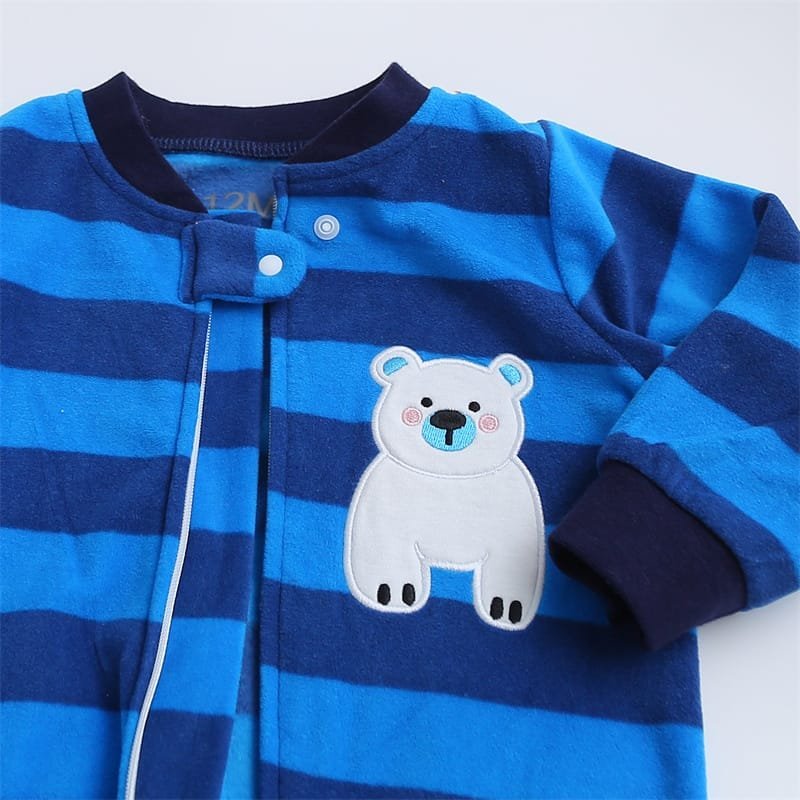 Let your little explorer stay cozy and cute in this soft blue striped fleece overall! Featuring a cheerful polar bear patch and warm footed design, it’s perfect for chilly days and bedtime snuggles.