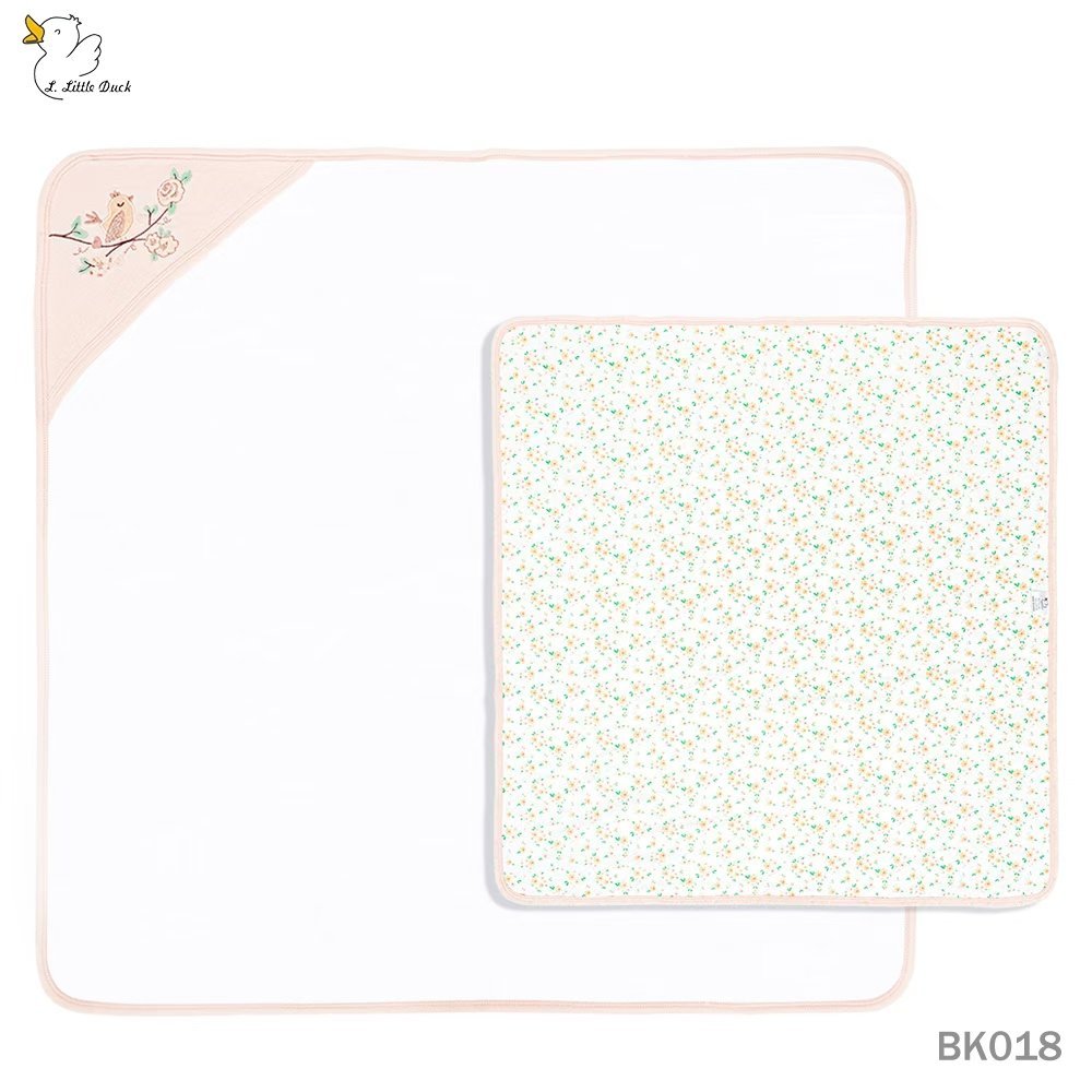 This blanket features a sweet embroidered bird and floral motif on the hooded corner, adding a charming and elegant touch. The reversible design offers versatility — one side with a delicate floral pattern and the other in a soft solid color — making it both practical and stylish. Its lightweight construction keeps your baby warm without overheating, ideal for use all year round.