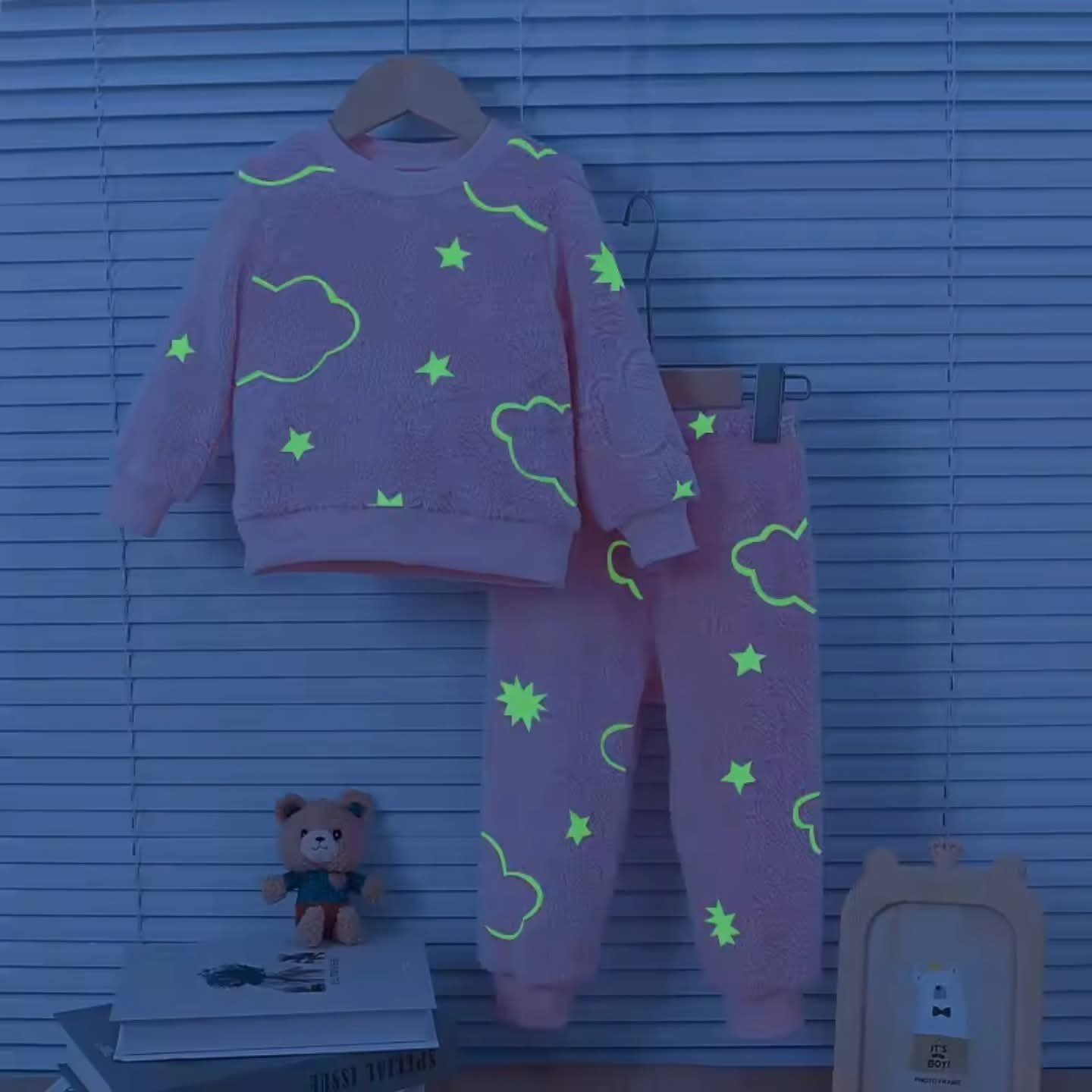 Wrap your child in ultimate warmth and magic with this ultra-soft, two-piece pajama set. Designed with both comfort and fun in mind, these pajamas transition perfectly from a cozy bedtime story to a glowing dreamland adventure.