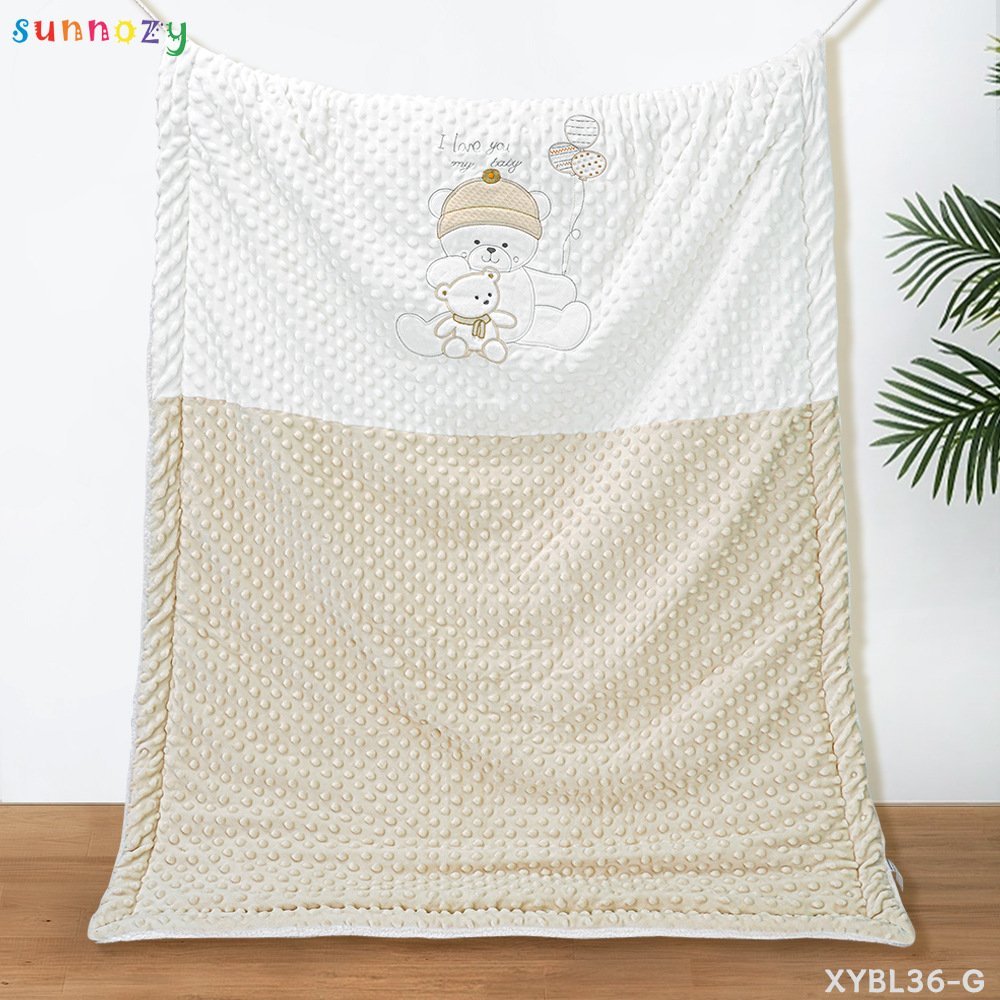 Dual-Textured Exterior: The blanket boasts the popular and soothing Minky fabric with a distinctive bubble/dot texture that babies love to touch, providing a comforting sensory experience.