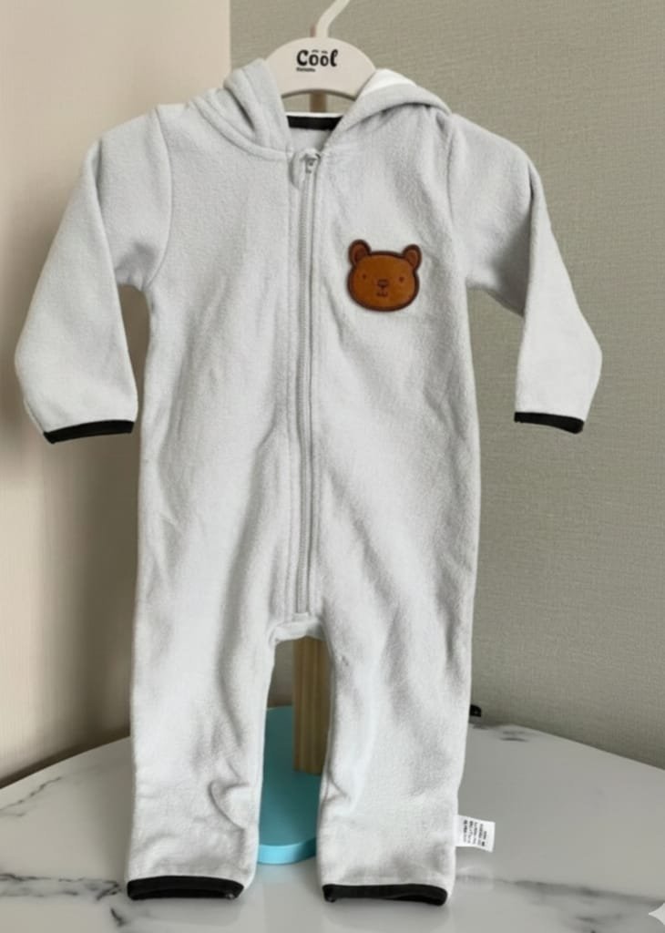 Material & Warmth: Made from a soft, light gray fleece material, this overall provides exceptional warmth and a cozy feel for sensitive skin.