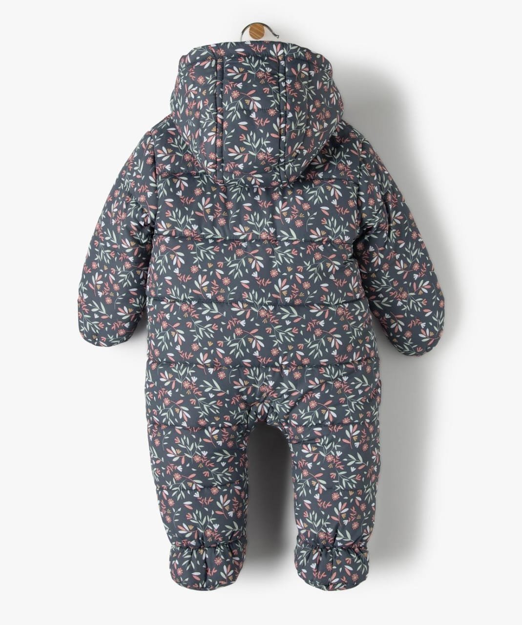This is a premium, cozy, and highly insulating quilted baby snowsuit (or overall/pramsuit) designed to keep infants warm and protected during cold weather outings.