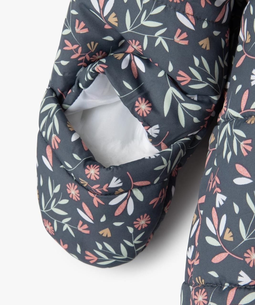 Attached Mittens (Image 3): The sleeves end in fold-over cuffs that convert into integrated, padded mittens, allowing the baby’s hands to be covered or uncovered as needed.