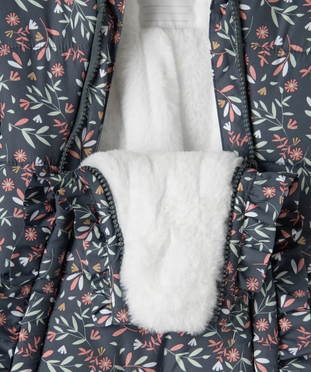 Hood: It includes an attached, warm hood, essential for protecting the baby’s head and ears.