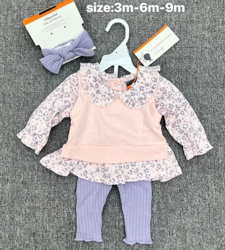 💜 3-Piece Baby Girl Outfit Set (Sizes: 3M – 6M – 9M)